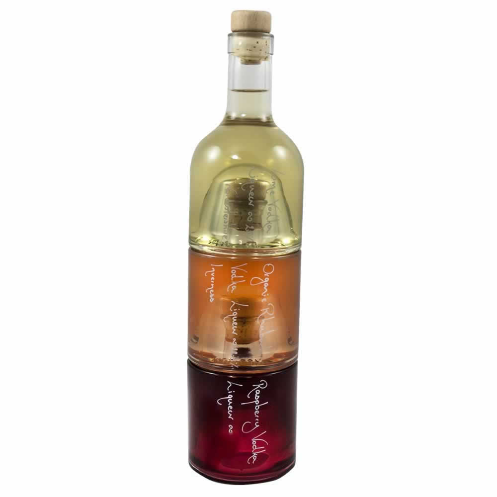 This gift set includes 2 beautiful 250ml Impilabile stacking bottles filled with our smokey 7 Year Old Islay Single Malt Scotch Whisky 61% on the top and our smooth Demijohn's Finest Scotch Whisky 40% on the bottom.